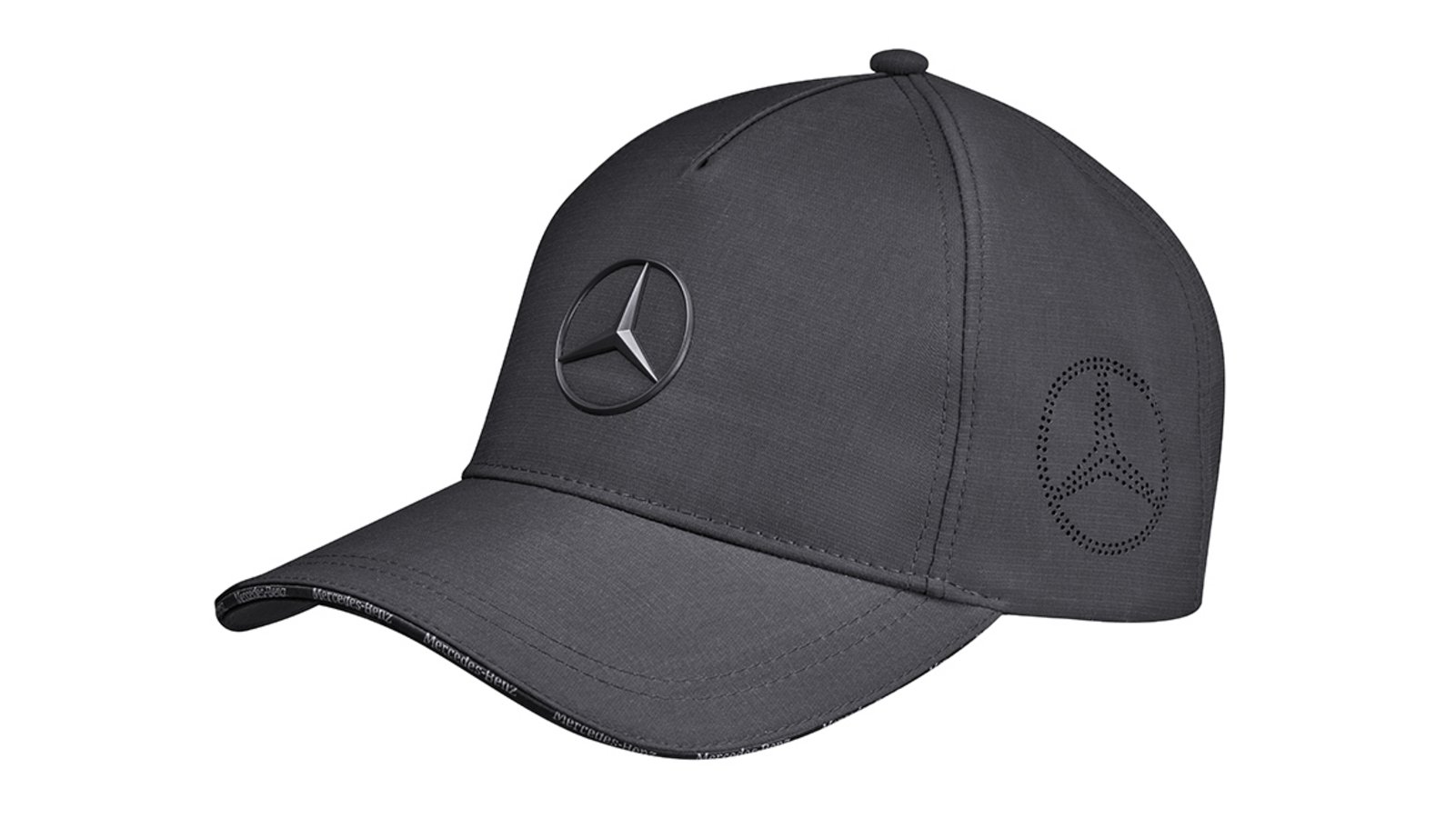 Dank eines silberfarbenen Clips mit Mercedes-Benz Logo ist die Cap größenverstellbar und lässt sich flexibel an jede Kopfform anpassen. Ein tonaler Sandwichpeak mit weißem Mercedes-Benz Schriftzug sowie ein tonaler Mercedes Stern in 3D auf der Vorderseite runden in Kombination mit dem perforierten Mercedes Stern an der Seite das modische Design harmonisch ab.